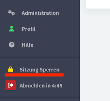 - Nach 5 Minuten Inaktivität wird die Sitzung gesperrt (nicht beendet)
