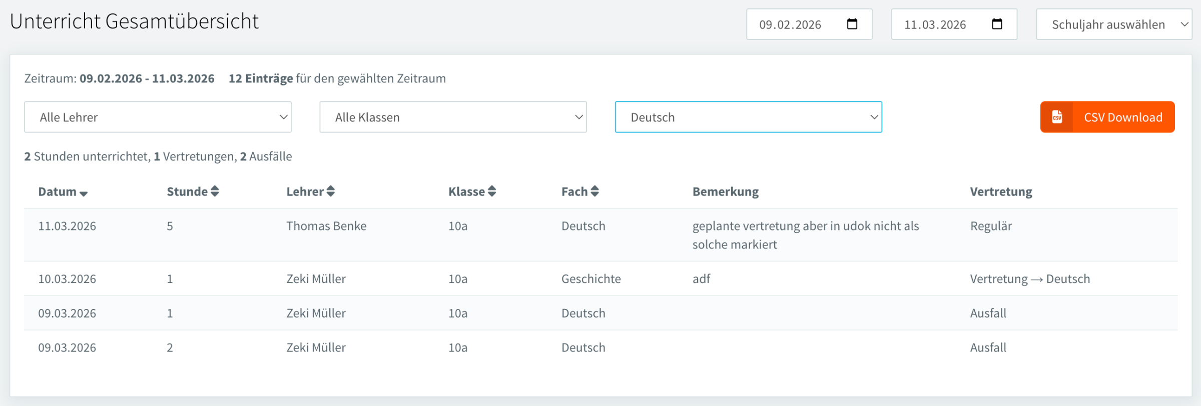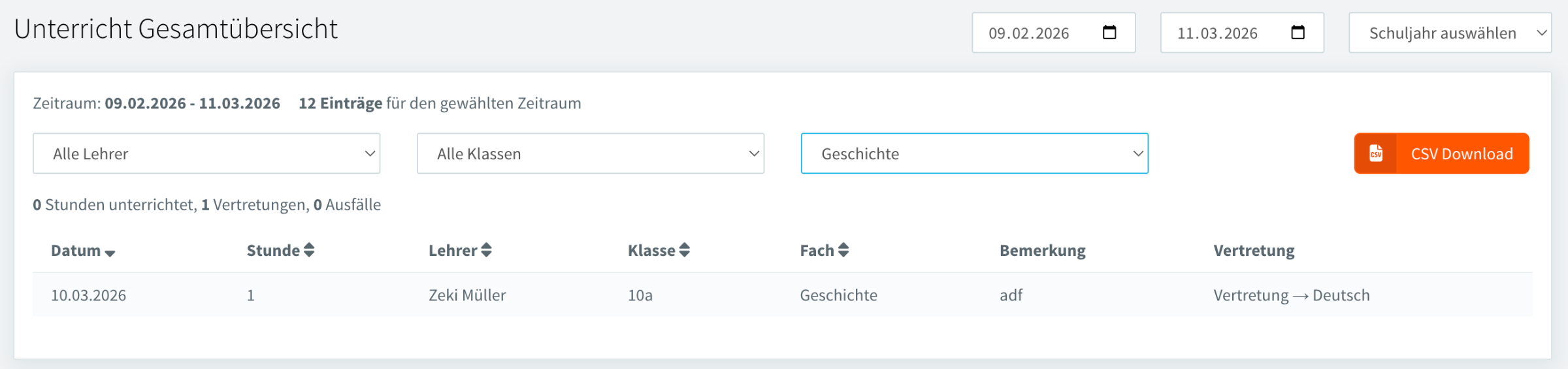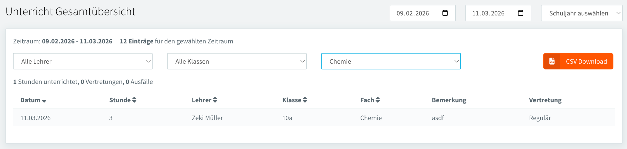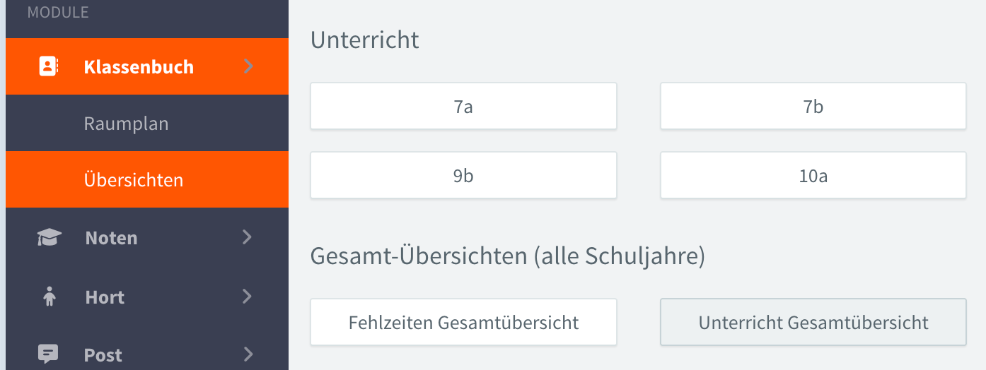 Klassenbuch / Übersichten / Unterricht Gesamtübersicht