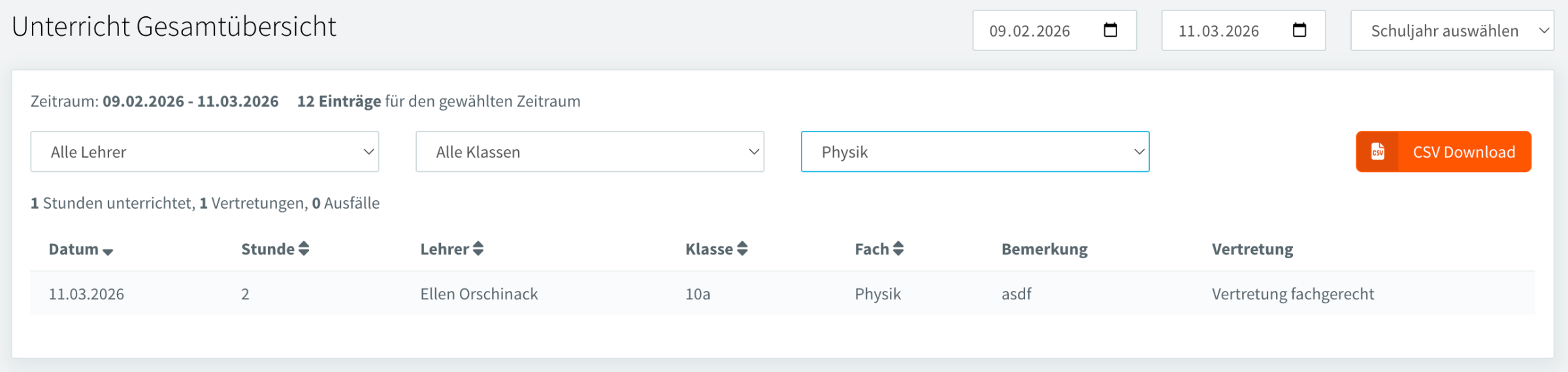 Fachgerechte Vertretung zählt als unterrichtet (Fach-Filter Physik):