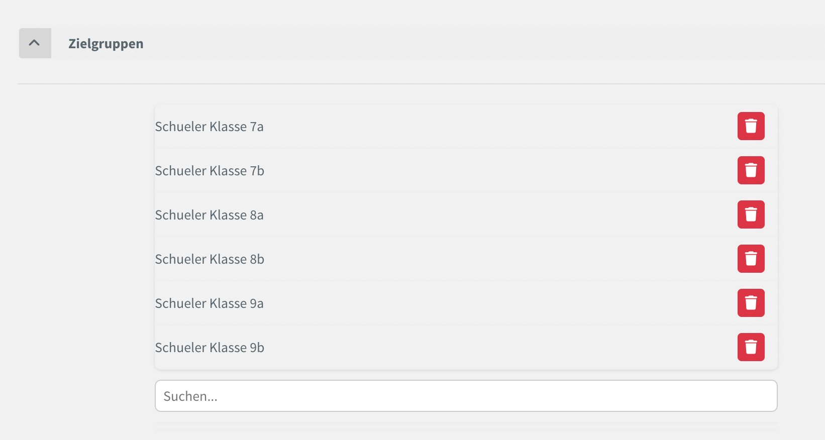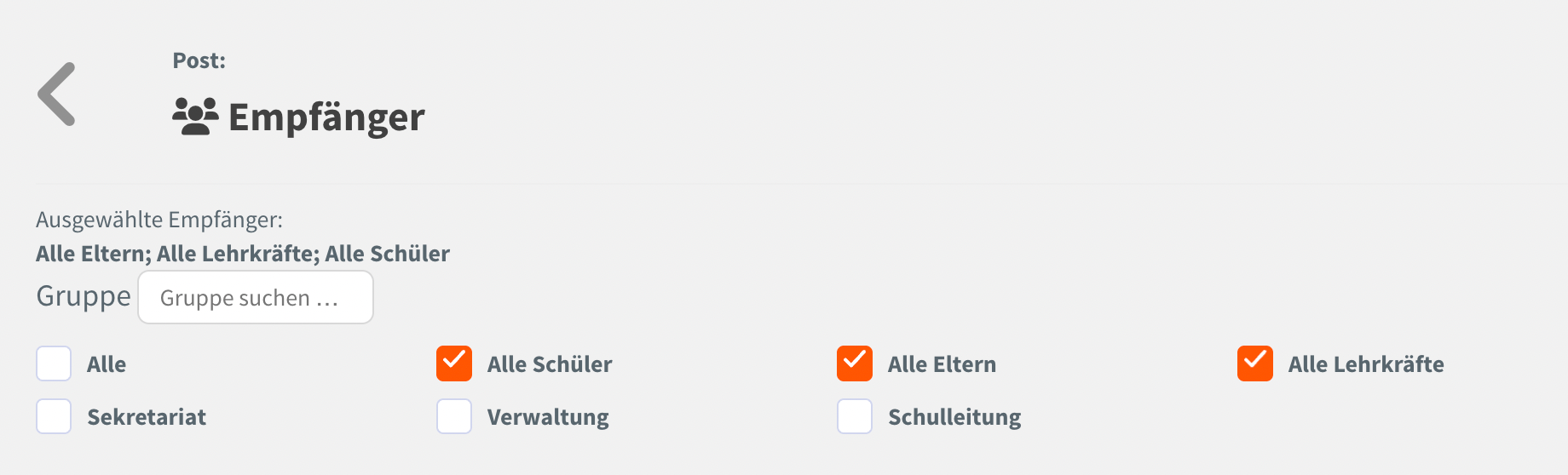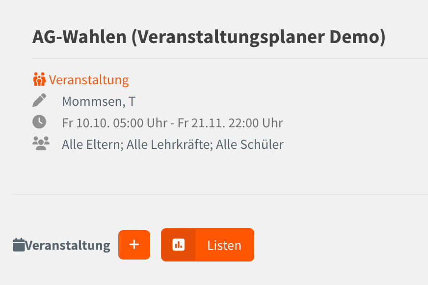 Auch wenn das Post für alle Eltern und Schüler sichtbar ist, bekommen diese nur Veranstaltungen angezeigt, bei denen sie selber oder eines ihrer Kinder in einer der Zielgruppen ist. So können Veranstaltungen für unterschiedliche Klassenstufen im gleichen Post erstellt werden.