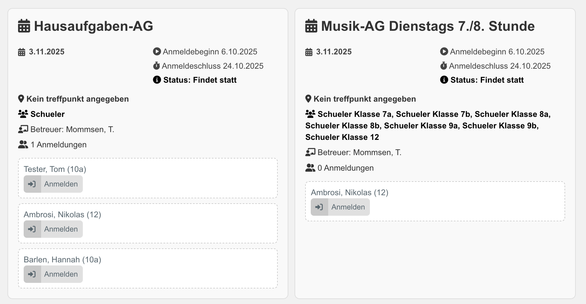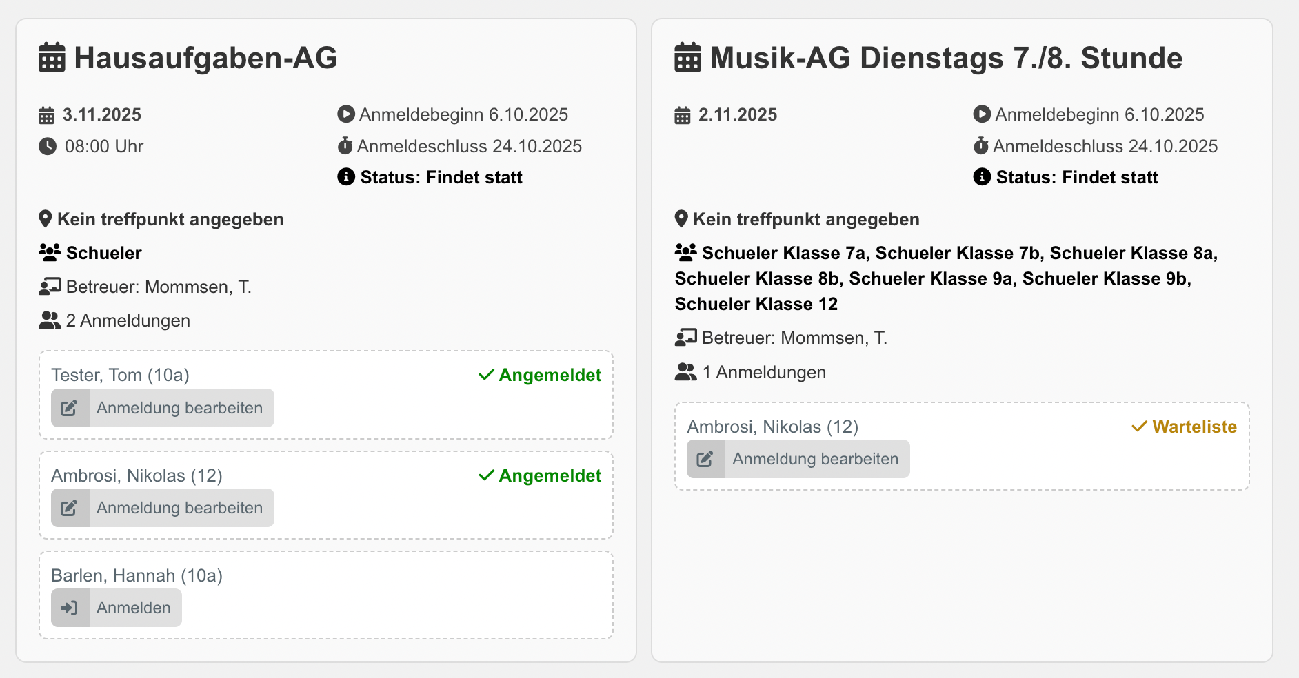 - AGs: Anmeldungen durch Eltern oder Schüler – ganz einfach